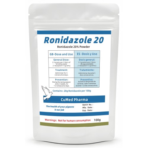 CuMed Pharma - Ronidazole 20 100gr - Trichomoniasis (Canker) - Ronidazole 20% - Racing Pigeons