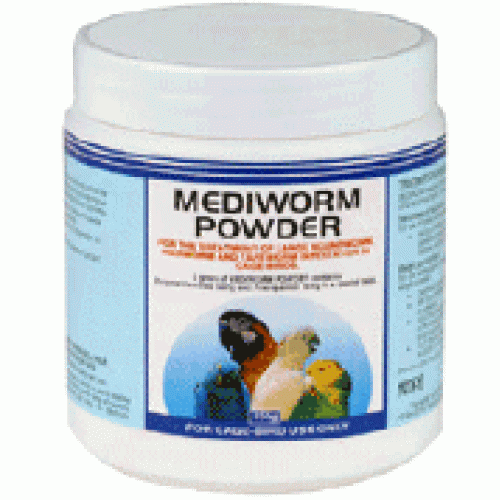 Medpet - MediWorm Powder 250g for Racing Pigeons a broad spectrum deworming powder for cage and aviary birds. Highly effective against Roundworm, Hairworm and Tapeworm.