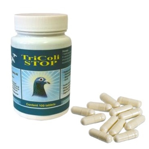 Pigeon Vitality - Tricoli-STOP 100 Caps – A major breakthrough and discovery in the pigeon sport for many years!. Removes 99.8 % of Trichomonas / Canker within 3 hours!, E-Coli in the pigeon within hours!.